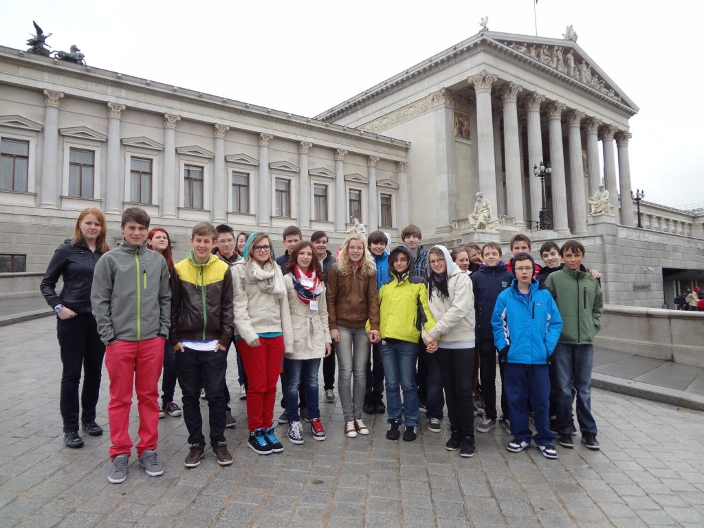 Gleich nach den Osterferien fuhren die 4B und 4D für zwei Tage in unsere Bundeshauptstadt. Nach dem Besuch der Schildkröte Puppi im Haus des Meeres und einer interessanten Führung durch die Ägypten-Sammlung im Kunsthistorischen Museum blieb noch etwas Zeit zum shoppen in der bekanntesten Einkaufstraße Österreichs, der Mariahilfer-Straße. Am nächsten Morgen fuhren wir mit der U-Bahn zum Palais Epstein, einem bedeutenden Gebäude der Wiener Ringstraße, direkt neben dem Parlament gelegen. In ihm befindet sich die sogenannte Demokratiewerkstatt. Hier konnten die Schüler entweder prominente Politiker wie Herrn Bundesrat Kneifel (ÖVP) und Herrn Elmar Podgorschek (Nationalratsabgeordneter der FPÖ) interviewen oder eine Zeitschrift zum Thema „Mitbestimmung“ gestalten. Am Nachmittag ging es noch einmal über die Mariahilfer-Straße zum Westbahnhof und mit dem Zug wieder zurück nach Enns.