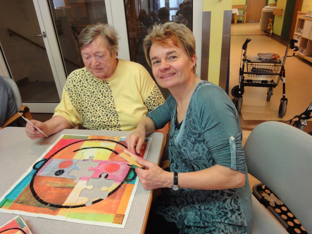 - Prof. Spiekermann mit Frau beim Puzzlen