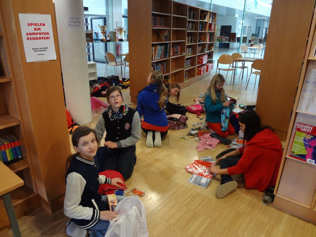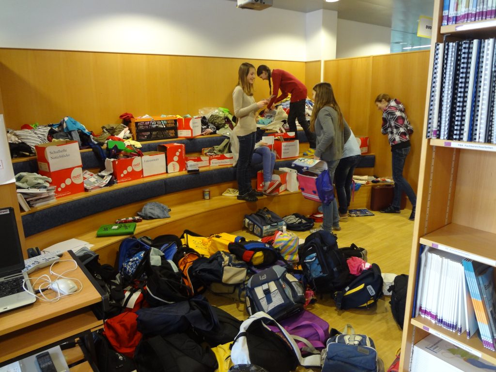 Ein herzliches Vergelt’s Gott allen Spendern. Danke aber auch an Herrn Direktor HR Mag. Franz Pröll, der von Anfang an dem Projekt wohlmeinend gestimmt war; danke Herrn Professor Mag. David Weinberger, der als Verantwortlicher der Schulbibliothek uns diese Räumlichkeit zum Sammeln zur Verfügung stellte; danke allen Lehrern, die die Informationen zum Projekt an die Schüler weitergaben, und an alle Schüler, die selbst wiederum Werbung für das Projekt machten; und danke schließlich vor allem den Schülern der 3D sowie den Helfern der 3B und 3C für das Packen der Rucksäcke und Ordnen aller gespendeten Gegenstände, sowie den Klassen 2C und 2D für das Helfen beim Verladen sämtlicher Spenden.