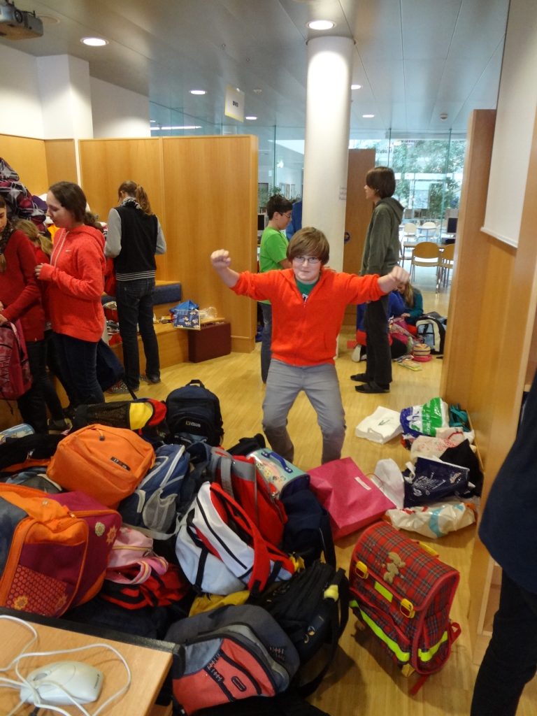 Als am Freitag vergangener Woche (1. März 2013) nach der großen Pause die im Zuge des Rucksackprojekts abgegebenen Spenden vorlagen, machten sich einige sehr fleißige Helfer ans Werk, die vollen Rucksäcke zu kontrollieren und ergänzen, was fehlte, bzw. zu entfernen, was überzählig war oder nicht in die Rucksäcke hinein gehörte. Nachdem sie schließlich auch noch die vielen Einzelspenden geordnet und gezählt hatten, lag endlich das überwältigende Ergebnis des Projektes vor: