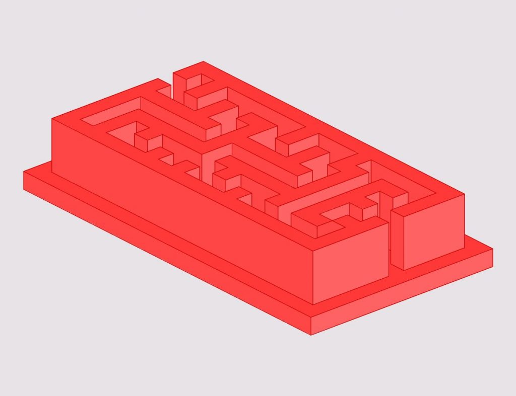 Arbeitsauftrag: Konstruiere auf einer vorgegebenen Grundplatte dein eigenes Labyrinth. Verwende die Software GAM. Schattiere das Objekt und exportiere ein Bild.