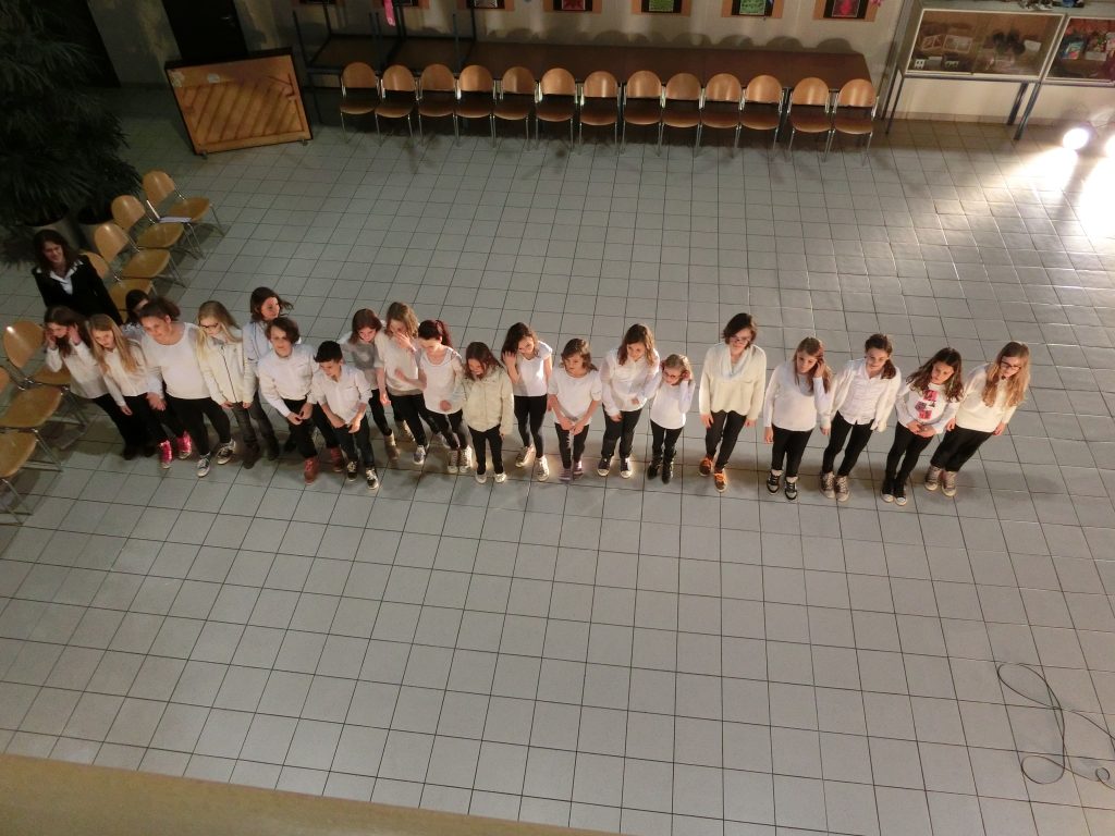 In den letzten Wochen absolvierte der Chor insgesamt 18 Auftritte mit jeweils zwei Liedern pro Vorstellung für eine Besuchergruppe beim Schultheater: Over the rainbow (3-stimmig) und Only Time (2-stimmig). Der Gesamtklang und die Auftrittsroutine wurde dabei immer besser!