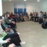 Nun erzählte uns noch der Rollstuhlfahrer Raini Hammer über sein Leben. Raini ist, seitdem er als kleines Kind auf den Hinterkopf fiel, schwer spastisch gelähmt und sitzt im Rollstuhl. Er ist 47 Jahre alt, lebt bei seinen Eltern und wird tagsüber im Diakonierwerk betreut. Auch wenn er sich beim Sprechen sehr schwer tat, und wir genau hinhorchen mussten, um etwas zu verstehen, lauschten wir alle gebannt seinen Erzählungen. Wir alle waren fasiniert von der Lebensfreude, die er, trotz seiner schweren Behinderung, ausstrahlt.