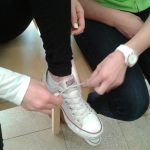 An einer Übung, bei der wir uns nur mit einer Hand ein Schuhband binden mussten, erfuhren wir, dass der Alltagsablauf von behinderten Menschen einfach langsamer vorangeht, da sie einfach für jeden Handgriff viel mehr Zeit benötigen. Auf dies muss bei der Arbeit mit Behinderten besonders eingegangen werden.