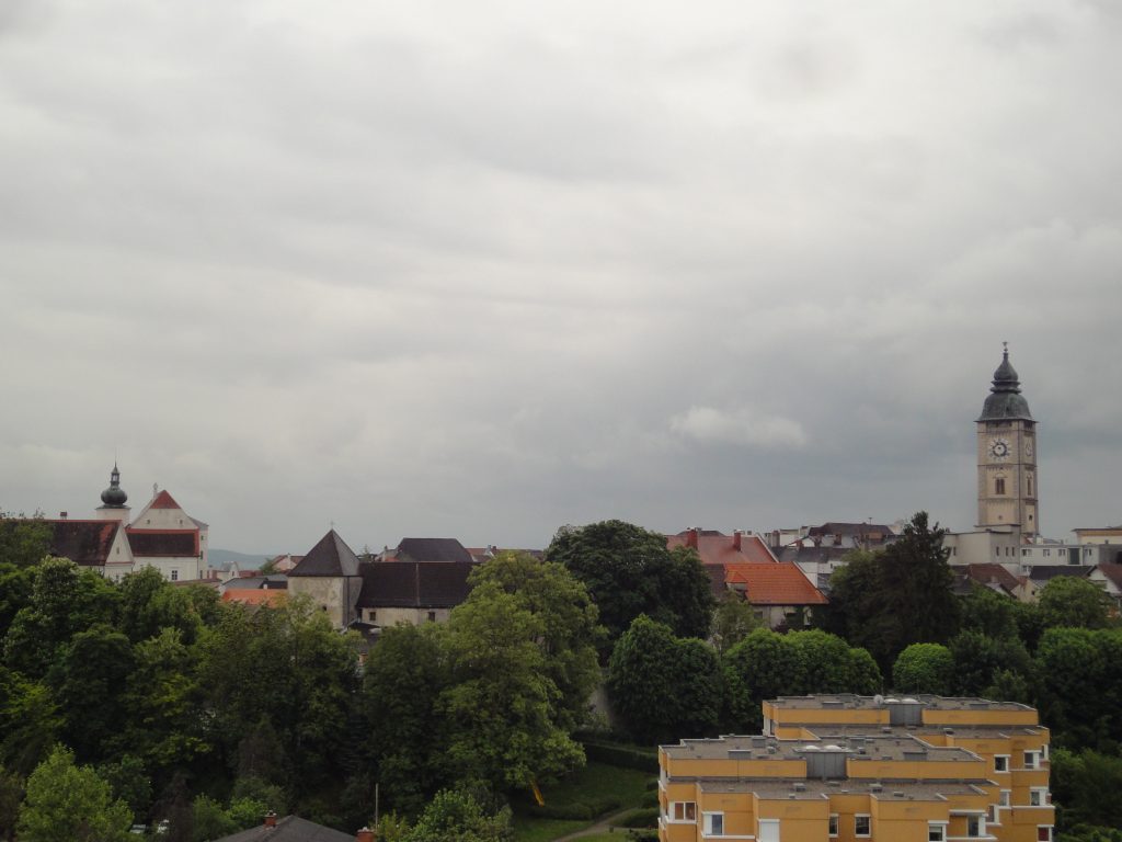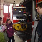 Nach den Besichtigungen der Autos gingen wir zu den Kabinen mit der Ausrüstung. Jeder durfte sich einmal den schweren Helm der Feuerwehrmänner aufsetzten und durch die Schutzbrille blicken. Zu guter letzt gingen wir ins Freie, wo der Höhepunkt der Führung auf uns wartete. Die Drehleiter! In 3er Gruppen fuhren wir 30 Meter hoch. Von dort oben hatte man einen wundervollen Ausblick auf ganz Enns. Wir sahen auch das Schloss Tillysburg und das Stift St. Florian. Eine Weile genossen wir den Ausblick doch nach kurzer Zeit mussten wir wieder nach unten. Dort angekommen war ich eigentlich ganz froh festen Boden unter den Füßen zu spüren. Kurz darauf begann es auch schon wie im Wetterbericht vorhergesagt zu regnen. Wir bedankten uns herzlich bei Herrn Hava für die nette Führung und rannten dann zurück in unsere Schule die Gott sei dank gleich neben der Freiwilligen Feuerwehr steht!