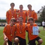 Die neu formierte Mannschaft aus Ober- und Unterstufen-Schülern zeigte sich von ihrer besten Seite. Thomas und Paul Dazinger sowie Christoph Iro spielten in der Abwehr wie auch im Zuspiel ihre ganze Erfahrung aus und Gustav Gürtler bewies – mit für den Gegner unerreichbaren Services und Angriffsschlägen – sein Können. Mit den „Erfahreneren“ im Rücken, zeigten auch die „Jüngeren“ (Jakob Huber und Gregor Kiesenhofer) tolles Faustball und gaben den Gegnern keine Chance, Punkte zu machen. Unsere Schüler spielten beeindruckend, steigerten sich von Satz zu Satz und triumphierten ohne in der gesamten Meisterschaft einen einzigen Satz verloren zu haben. Nach einem anspruchsvollen Finale gegen das Team der HTBLuVA Salzburg, durften sich unsere Jungs glücklich und stolz „Faustball-Bundesschulmeister“ nennen.