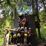 Im Mittelpunkt der Woche stand natürlich Sport, also fuhren wir jeden Tag ins Salzatal, wo wir mit den Guides von Freelife, einer Organisation für Outdoorsport, verschiedene Sportarten ausübten, die man zu Hause nicht jeden Tag machen kann. So kämpften wir uns, aufgeteilt in zwei Gruppen, an einem Tag durch den Klettergarten und ein anderes Mal über den anstrengenden Klettersteig, wo wir aber mit einer 100 Meter langen Flying Fox Strecke belohnt wurden. Bei den Sportarten im Wasser ging es mit dem Kajak auf den Badesee, wobei wir aber etwas mit der Wassertemperatur von gefühlten 8°C kämpften und irgendwann unsere Arme auch vom Paddeln taub wurden. Das Highlight der Woche war eindeutig das Raften, bei dem wir in 10-er Booten einige Kilometer auf der Salza zurücklegten und ziemlich nass wurden, die einen durch den Fluss, die anderen durch die ständigen Paddel-Attacken der anderen Boote. Für diejenigen ohne Allroundschwimmschein gab es als Ersatzprogramm Bogenschießen und Geocaching. Am letzten Vormittag hatten wir die Aufgabe in 4 Teams stabile Flößer aus Brettern, Tonnen und Seilen zu bauen, mit denen wir dann den See überqueren mussten, ohne dabei unterzugehen.