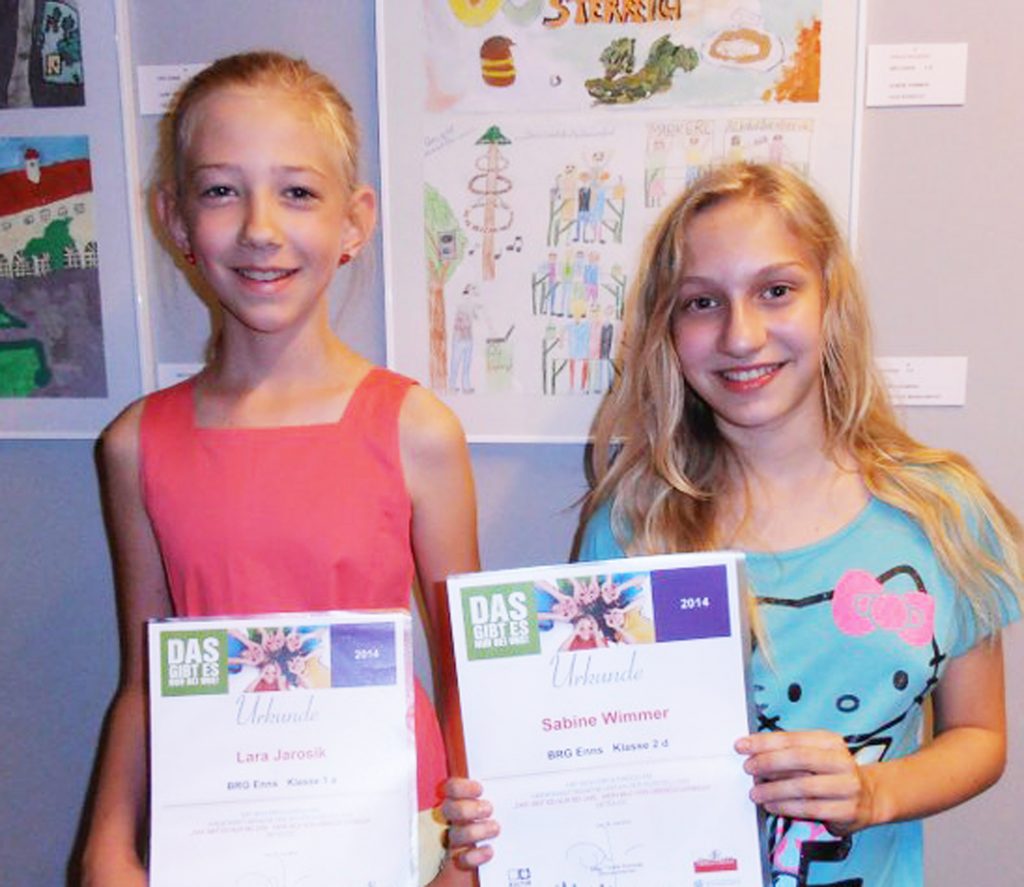 Im Rahmen der Aktion wurden vom b[r]g Enns die Schülerinnen Lara Jarosik 1 a (jetzt 2a) und Sabine Wimmer 2 d (jetzt 3d) von der Jury ermittelt.