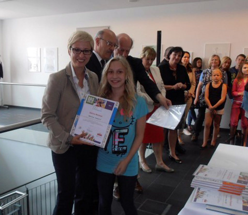 Die Überreichung des Preises sowie die Eröffnung der Ausstellung "Das gibt es nur bei uns – mein Bild von Oberösterreich" wurde von Bildungslandesrätin Mag. Doris Hummer am 25. Juni 2013, im Dienstleistungszentrum des Landes OÖ., Direktion Bildung und Gesellschaft, vorgenommen.