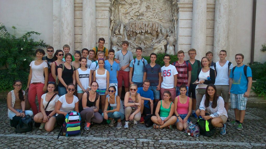 Alle Wege führen nach Rom. Dies gilt auch für die Latein-Schülerinnen und –Schüler der achten Klassen, deren erster Weg im neuen Schuljahr dorthin führte. Wie schon Goethe stellten sie fest, dass Rom ein Gesamtkunstwerk ist. Nahezu jedes Gebäude weist Besonderheiten auf und verdient sowohl Beachtung als auch Bewunderung. Säulen, Foren, Brunnen und Kirchen dominieren das Stadtbild, oftmals verbirgt sich deren wahre Schönheit im Innern. Denn von außen würde man so manche Basilika für eine restaurierungsbedürftige Ruine halten. Umso beeindruckender ist es dann, wenn man sie betritt und von den Figuren, den Mosaiken und den kolossalen Säulen überwältigt wird. Stichwort „kolossal“. Natürlich führte uns Herr Mag. Stöllner auch zum Wahrzeichen Roms, dem Kolosseum. Durch den permanenten Regen, der uns den ganzen Tag begleitete, konnten wir uns die Seeschlachten im Inneren des Amphitheaters plötzlich viel besser vorstellen.