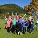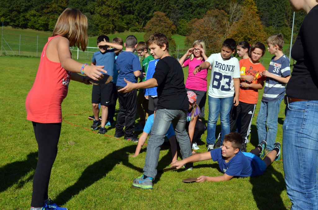 Anschließend spielten wir „Wildbach überqueren". Unsere Frau Professor, Manfred und Herr Minichberger waren das wilde Wasser. Wir SchülerInnen wurden in zwei Gruppen aufgeteilt und mussten probieren, mit Holzplättchen über das imaginäre Wasser auf eine rotmarkierte Insel zu kommen. Wenn jedoch ein Plättchen allein, ohne dass es jemand berührte, im Wasser lag, wurde es weggeschwemmt. Diese Aufgabe erwies sich als schwieriger als gedacht. Doch am Schluss kamen alle auf die Insel. Aus diesem Spiel lernten wir, dass wir, auch wenn wir getrennt sind, eine Gemeinschaft sind.