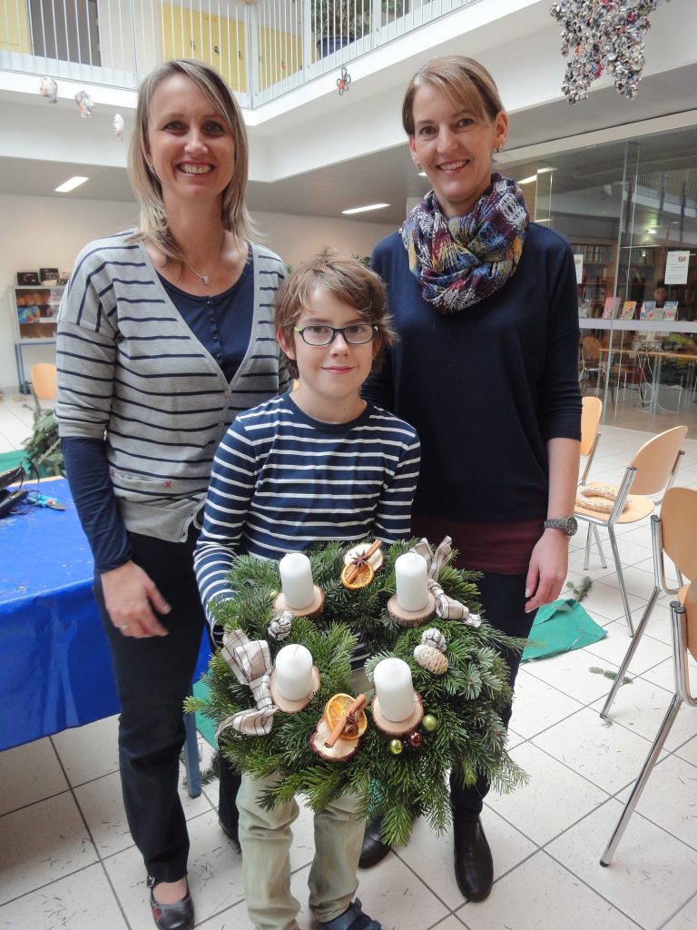 Danke den vielen Eltern und Opas der 1A und 2C, die uns geholfen haben – ein „generationsübergreifendes" schönes Gemeinschaftsprojekt, das Spaß macht, die Umwelt schont und von dem wir als Ergebnis einen individuell gebundenen und geschmückten Adventkranz in Händen halten…der Advent kann beginnen.