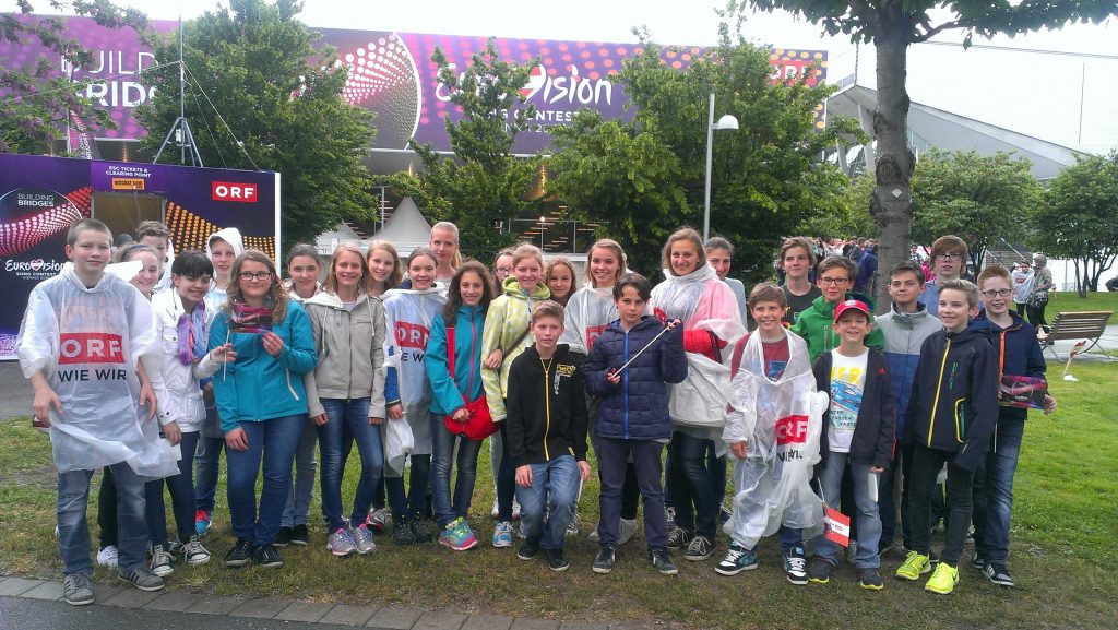 Der ORF gestaltete mit dem Eurovision Song Contest 2015 die größte Show-Produktion aller Zeiten in Österreich. Die bombastische „Augen-Bühne“ sorgte dabei auch international für große Anerkennung. Drei Klassen unserer Schule (3C, 4D, 5B) nahmen erfolgreich am „Eurovisions Youth Contest“ teil. Sie wurden bei diesem Wettbewerb für ihre Projekte ausgezeichnet und erhielten damit eine Einladung nach Wien. So waren wir am 20.05.2015 in der Wiener Stadthalle live dabei (bei der Generalprobe und Voraufzeichnung zum 2. Semifinale). Der Wettbewerb stand auch unter dem selben Motto wie der ESC: „building bridges“: