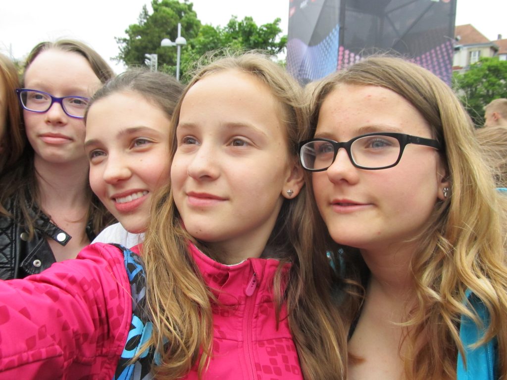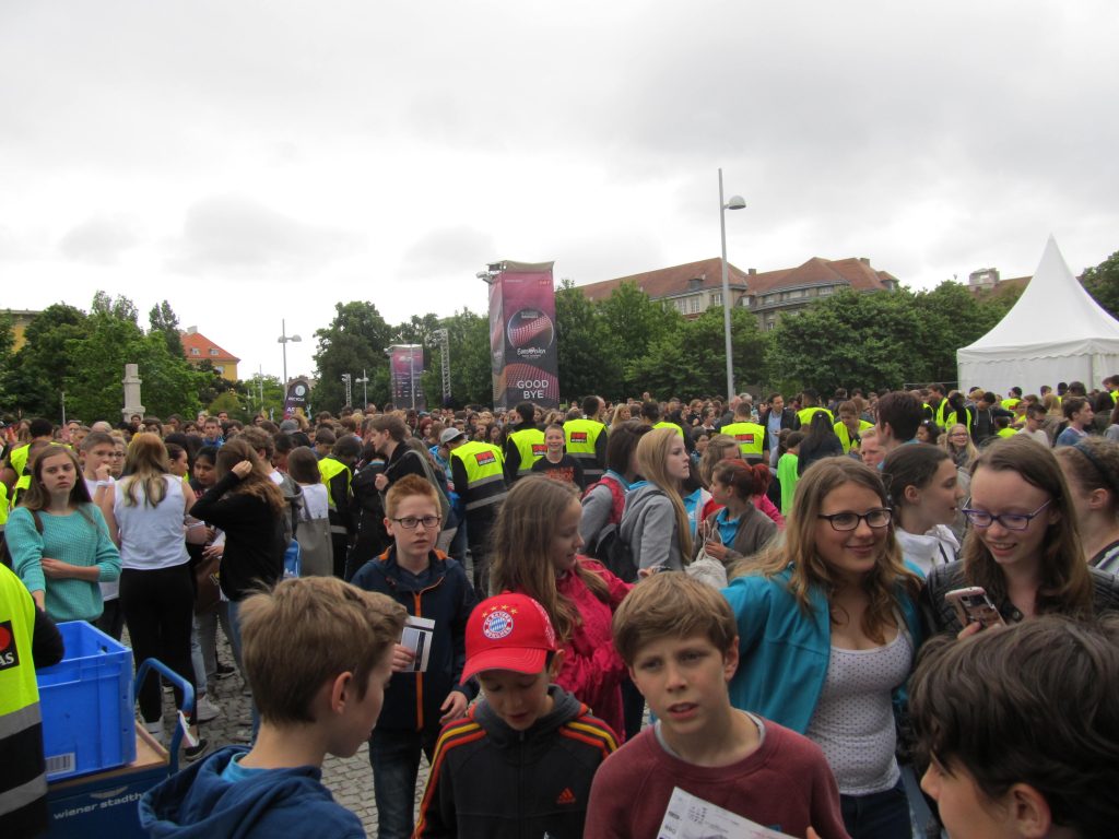 Gestern waren wir beim Song Contest in Wien. Vor der Halle standen bereits ziemlich viele begeisterte Zuschauer. Wir waren alle sehr aufgeregt, als wir realisierten, dass Conchita Wurst und Mirjam Weichselbraun ganz in unserer Nähe standen. Als Conchita vorher mit dem Taxi vorbeigefahren wurde, standen wir ungefähr 2m neben ihr!!!!!