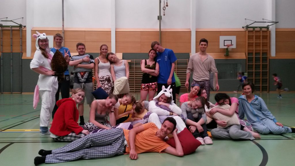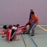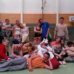 Einige unserer MaturantInnen besuchten ihre Schule – hoffentlich nicht zum letzten Mal – zu ihrem Maturastreich. Sie empfingen SchülerInnen und LehrerInnen mit Polstern und Schminkutensilien bewaffnet und "hinterließen ihre Spuren". Die Polsterschlacht vor und im Schulgebäude fand eine Fortsetzung in der Sporthalle im BSP-Unterricht mit der 1DE. Mit einem letzten "Mörderball"-Spiel gegen die Erstklassler und einem abschließenden gemeinsamen Gruppenfoto verabschiedeten sich die sichtlich gezeichneten und erschöpften MaturantInnen vom b[r]g Enns.