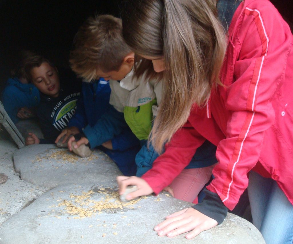 - Mit dem Mahlstein Mehl für die nächsten Brote mahlen