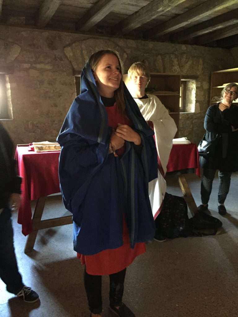 Die Therme war unsere letzte Station. Dort gab es so etwas wie eine Fast-Food-Station, wo Römer im Vorbeigehen kurz etwas zum Essen mitnehmen konnten. Drinnen war es warm, je nach Raum unterschiedlich. Das ganze Haus wird heute noch nach alter römischer Tradition geheizt, das heißt, es gibt eine Feuerstelle und der Rauch wird unter den Boden geleitet. Im letzten Raum war uns allen schon recht warm.