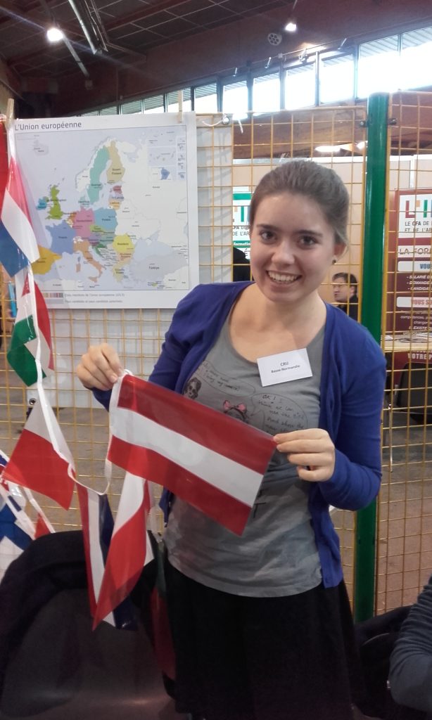 Ich arbeite im CRIJ (Centre Régional d’Information Jeunesse = regionales Jugendinformationszentrum), welches aber auch das Label „Europe Direct“ trägt. Es freut mich, dass ich viele verschiedene Aufgaben habe: junge Menschen informieren über diverse Möglichkeiten, ins Ausland zu gehen, über die Europäische Union und Erasmus+, über Österreich und die deutsche Sprache referieren; ein Beispiel sein, um zu zeigen, dass es wirklich möglich ist, ins Ausland zu gehen; den Materialbestand am Laufenden halten (ich bekomme regelmäßig riesige „Geschenke“ mit hunderten von Broschüren, Plakaten und Heftchen, die dann verräumt werden müssen); und auch die Internetseite mitgestalten. Um dies alles machen zu können, gehe ich in verschiedene Schulen, bin bei Seminaren dabei, organisiere diverse Veranstaltungen, arbeite im Büro und auch im Empfangsraum des CRIJ.