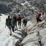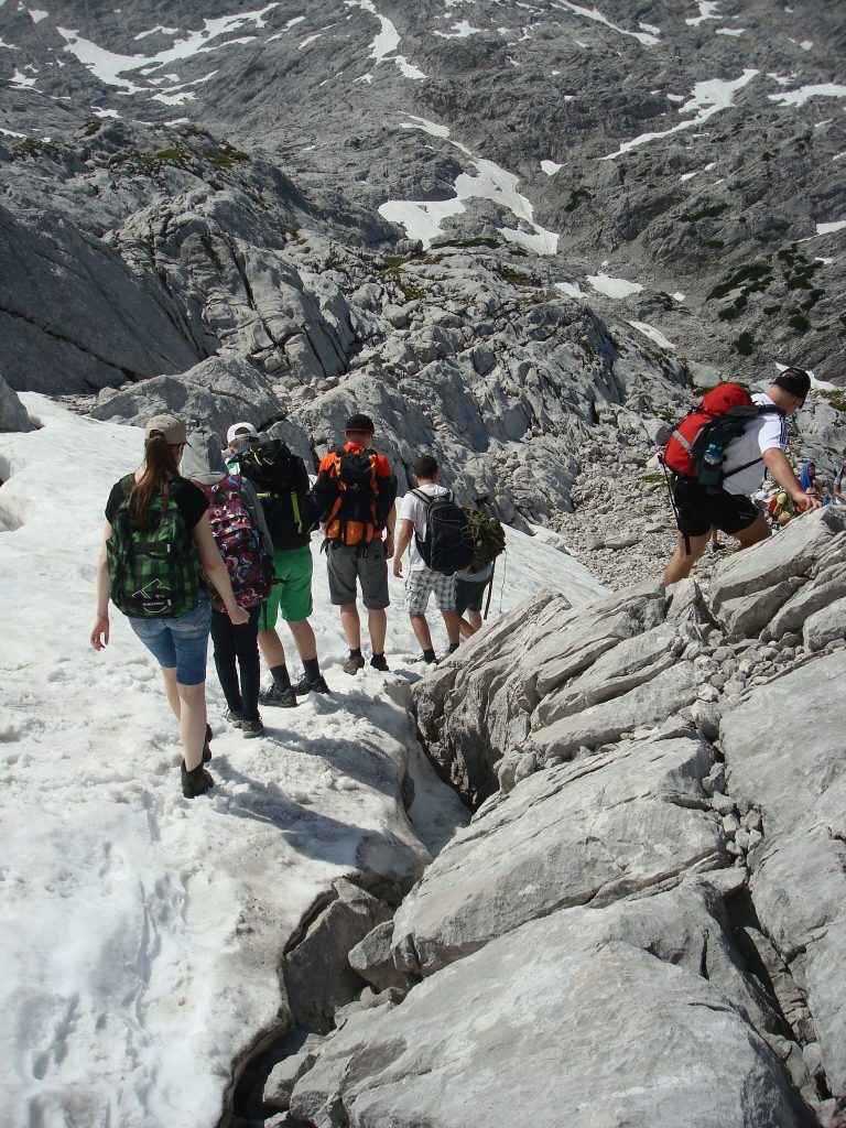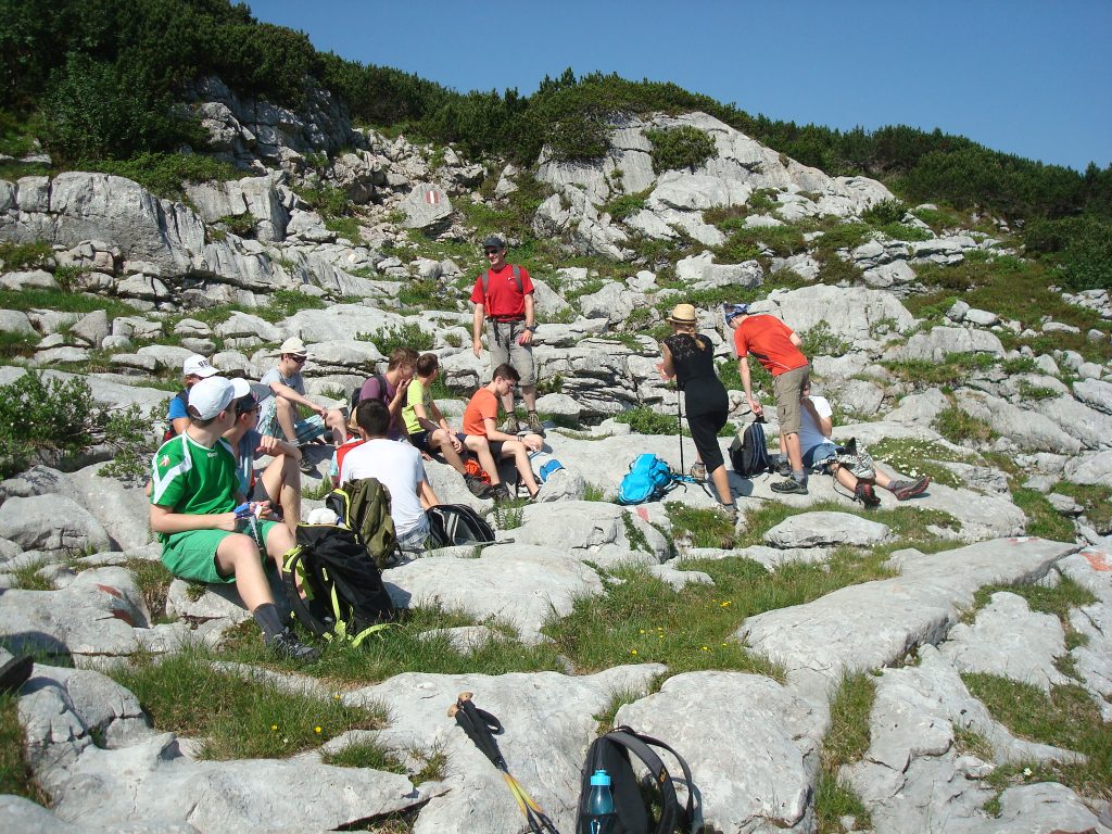 Der Unterricht im Gebirge war ein wesentlicher Bestandteil der Exkursion. Neben einem Einblick in die montane Vegetation, das Karstgebiet und natürlich die Gletscher hatten die SchülerInnen auch Gelegenheit, sich in der Gletscherlandschaft sportlich zu ertüchtigen und anschließend den Sprung ins kalte Nass zu wagen (Mario und Simon waren höchst erfrischt nach ihrem Bad im Gletschersee).