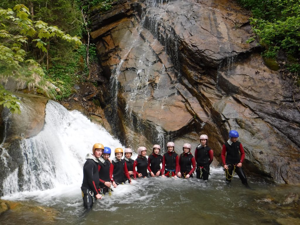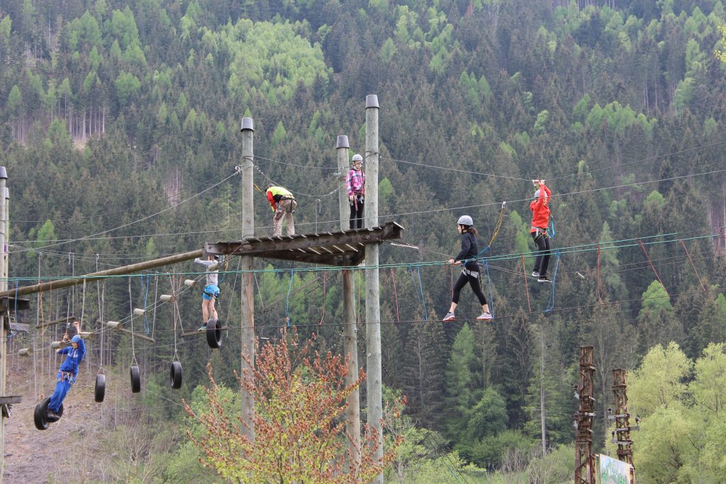 Umgeben von traumhaften Wäldern und Bergen, sowie am Ufer des Flusses Möll, lag das Camp, in dem wir Schüler in Holzhütten rund um einen Lagerfeuerplatz untergebracht waren. Die idyllische Landschaft lud geradezu zum Erkunden der Natur ein – und genau das wurde auch getan, trotz des anhaltenden Regens. Durch Canyoning, Wassersport und Rafting in der reißenden Möll wurde ein Bewusstsein für die rohe Kraft des Wassers geschaffen. Auch Golf, Cart-Fahren, Pfeil und Bogen, Wandern, Hochseilgarten, Motorikpark und vieles mehr waren Programm dieser Woche. Die meisten von uns konnten eine Menge Erfahrungen fürs spätere Leben sammeln und vielleicht sogar die eine oder andere Angst überwinden. Mutige sprangen von einer hohen Brücke in die eiskalte Möll oder schwangen von Reifen zu Reifen im Hochseilgarten. Von den Camp-Guides wurde uns erklärt, wie man richtig durch einen Fluss schwimmt ohne sein Ziel zu verfehlen oder wie man in der Nacht seine Sinne schärfen kann. Zusätzlich erfuhren wir Interessantes über das Mölltal und dessen Vergangenheit. Zum Beispiel von dem einstigen Goldrausch, der nur bis zur Eroberung der Inkareiche anhielt, und damals tausende Menschen in das, heute eher dünn besiedelte, Tal lockte.
