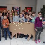 Die 1B-Klasse kaufte gemeinsam ein Schwein, die Mädchen der 2A schenkten 2 Ziegen und auch einige andere spendeten genug für ein „ganzes Tier“. In jeder großen Pause versammelte sich eine Schar von Schülerinnen und Schülern um nachzusehen, wieviel noch bis zum Spendenziel des „Lieblingstiers“ fehlte. Nach jeder Spende konnte man sich mit dem Namen auf einem der großen Karton-Tier verewigen. Vor allem am Elternsprechtag wurde noch einmal einiges an Geld beigesteuert, bevor die nun schon traditionelle Caritas-Spendenaktion erfolgreich abgeschlossen wurde.