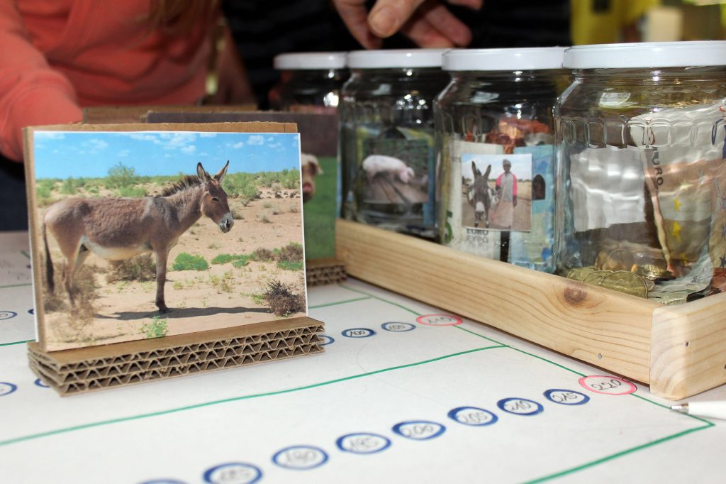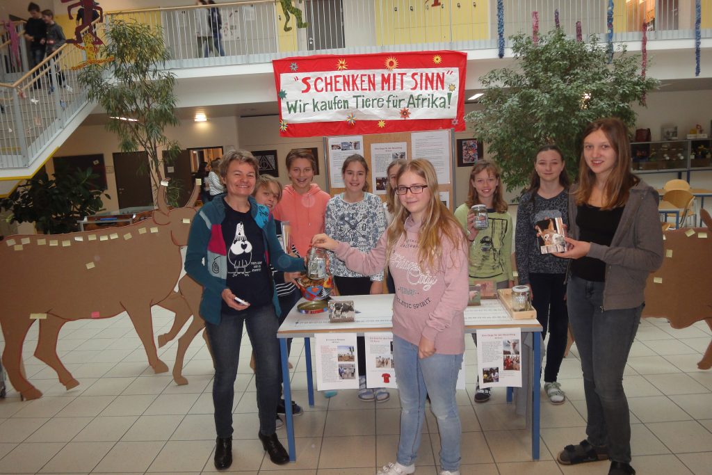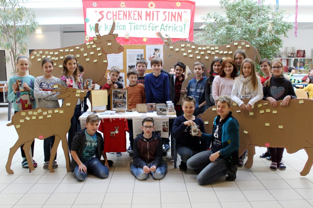 Nach den tollen Spendenergebnisse der Vorjahre, mit welchen die Caritas Eseln, dann Kamele und zuletzt eine ganze Hühnerschar für afrikanische Familien kaufen konnte, gingen heuer 4 verschiedene Nutztiere an den Start. Vier große, im Werkunterricht aus Karton geschnittene Tiere schmückten die Aula und luden zum Spenden ein: Ochse, Schwein, Esel, und Ziege. Jedes von ihnen hat einen wichtigen Nutzen in Afrika und erleichtert das Leben der Menschen maßgeblich. Die Bewohner Burundis und Äthiopiens sind von der dort herrschenden Trockenheit schwer betroffen und ihr Alltag ist äußerst beschwerlich.