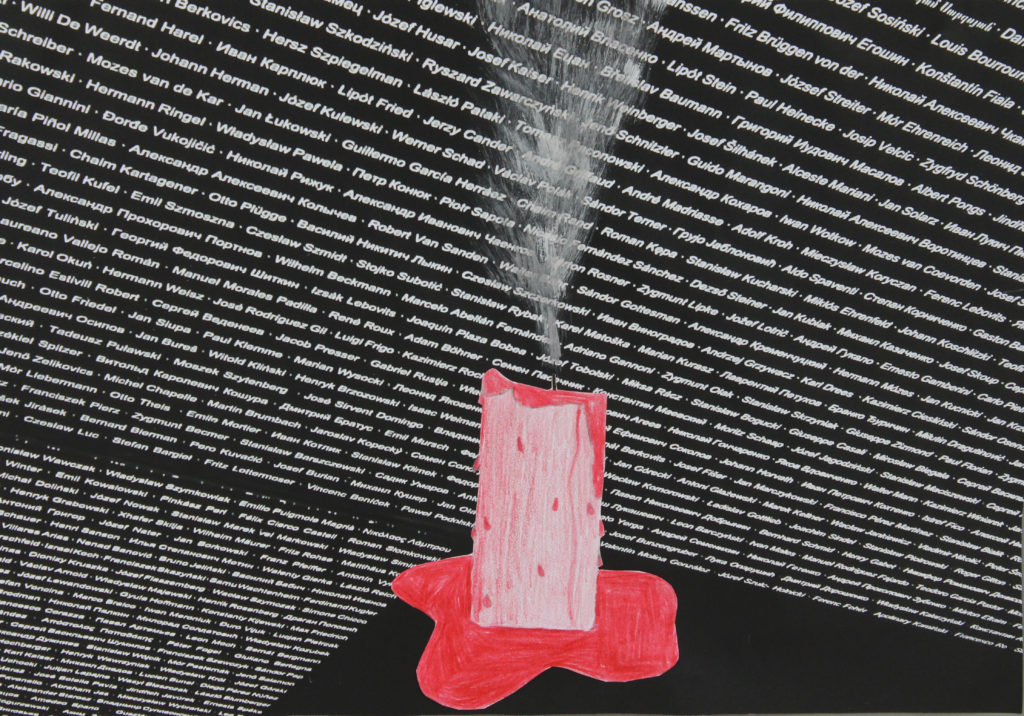 Es war schwer, die Eindrücke und Informationen der Exkursion nach Mauthausen und Gusen zu verarbeiten. Auch wenn mancher Schüler so tat, als würde ihn das nichts angehen, blieb doch ein innerer „Stachel“. Gedenken funktioniert nicht mit Statistik allein, jede*r Tote hat eine Familie und eine Geschichte. Im Unterricht Bildnerische Erziehung hat sich die 4F anschließend im Projekt „Gedanken-Gedenken“ nochmals mit ihren Emotionen zu diesem Thema auseinandergesetzt. In den Gedenkstätten aufgenommene Fotos wurden mit unterschiedlichsten Techniken bearbeitet. Zeichnungen, Collagen, Übermalungen, digitale Bearbeitungen sind entstanden, die in einer vielfältigen Ausstellung präsentiert werden sollten – die Corona-Krise hat das analog verhindert!