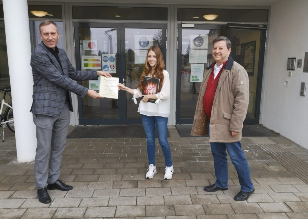 - Preisübergabe, von links nach rechts: Direktor Mag. Dr. Werner Dietl, Stefanie Haimböck, Prof. Mag. Herbert Stöllner