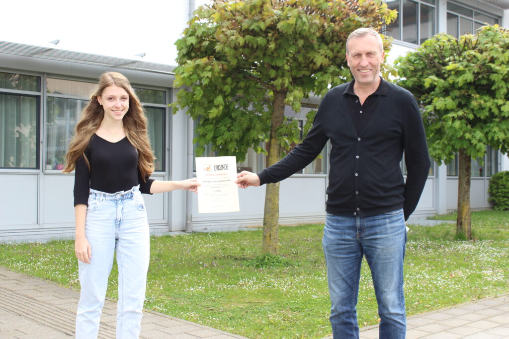 - Stefanie Haimböck und Direktor Mag. Dr. Werner Dietl bei der Übergabe der Urkunde