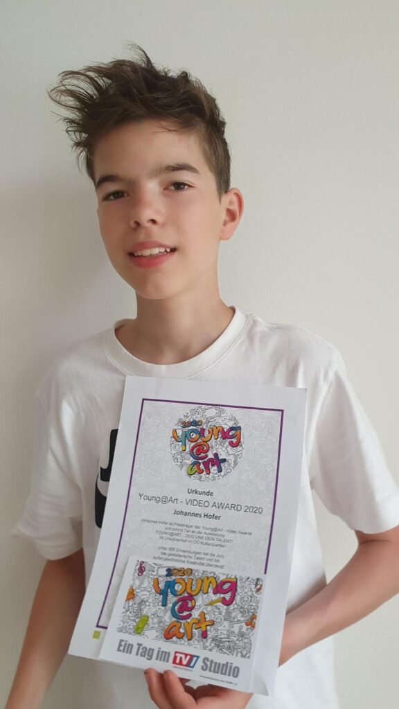 Jedes Jahr zeigt der Kreativwettbewerb „Young at Art“ das Können junger Talente. Johannes Hofer aus der 4E konnte mit seinem audiovisuellen Werk die Jury überzeugen und gewann den Video-Award! Bei über 880 Einreichungen eine tolle Leistung! Weitere Preise wurden unter anderem in den Kategorien Grafik, Malerei und Fotografie vergeben.