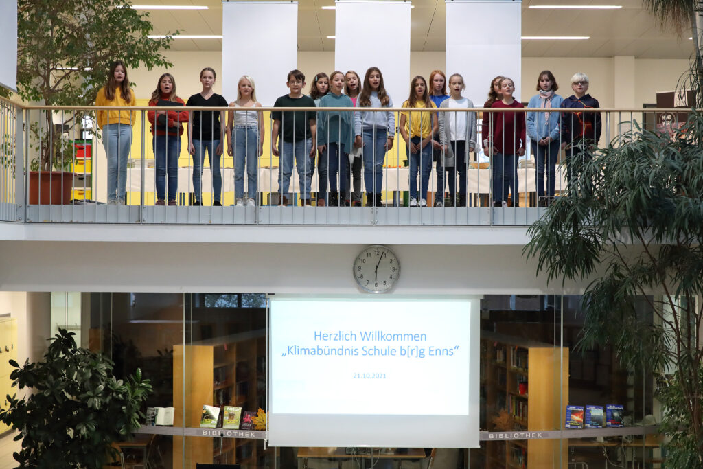 Am 24. Oktober 2019 setzte die Schulgemeinschaft des b[r]g Enns im Rahmen einer Klimabündniskonferenz mit einstimmigem Beschluss den offiziellen Startschuss und einen wesentlichen Schritt in Richtung Klimabündnis Schule. Mit der anschließenden Gründung einer Klimaarbeitsgruppe und der Ausbildung von Schülerinnen und Schülern zu Klimapeers, wurde die Klimathematik auch personell auf eine breite Basis gestellt. Dass sich die Schule als Ort der Bildung und Erziehung junger Menschen dieser Thematik nicht verschließen darf, ist klar. Sie ist verpflichtet, eine entsprechende Aufklärungsarbeit zu leisten und ein ansprechendes Niveau von Bildung für nachhaltige Entwicklung zu erreichen.