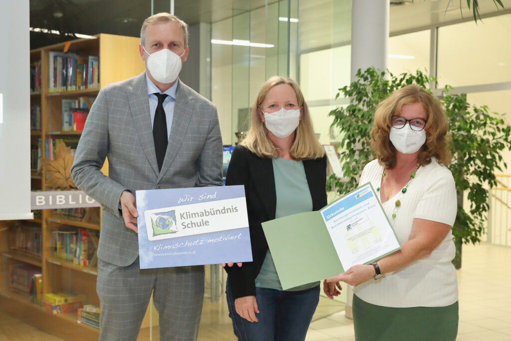Die Überreichung des Zertifikates „Klimabündnis Schule“ durch die stellvertretende Leiterin Klimabündnis Oberösterreich, Ulrike Singer, war der vorläufige Höhepunkt in diesem Prozess, ein Symbol der Anerkennung und das äußere Zeichen aller im Hause gesetzten Klima-Aktivitäten. Vor allem aber zeigte es, dass sich das b[r]g Enns für die nachfolgenden Generationen und darüber hinaus verantwortlich fühlt und demzufolge eine dementsprechende Haltung sowie individuelles und kollektives Handeln einfordert. Mein besonderer Dank gilt allen, die seit Jahren mithelfen, die zuvor genannten Ziele zu erreichen und die festgelegten Maßnahmen umzusetzen. Ganz besonders möchte ich in diesem Zusammenhang meine Kollegin Heike Moser erwähnen, die diesen Prozess unermüdlich fortsetzt und die für die Organisation dieser Veranstaltung hauptverantwortlich zeichnete. Des Weiteren darf ich mich bei der Moderatorin Julia Mayr für die eloquente Begleitung durch den Abend bedanken, beim Schulchor unter der Leitung von Dagmar Öhler, den helfenden Händen am regionalen Buffet und allen, die zum Gelingen dieser Veranstaltung beigetragen haben. Ein herzliches Dankeschön an Prof. Herbert Formayer für seinen Fachvortrag und den Schülerinnen und Schülern für die Präsentation ihrer Arbeiten. Vielen herzlichen Dank an unsere Gäste für Ihr Kommen, vor allem aber an Landeshauptmann-Stellvertreterin Christine Haberlander, die uns mit Ihren netten Worten großen Mut zur Fortsetzung des eingeschlagenen Weges zugesprochen hat.