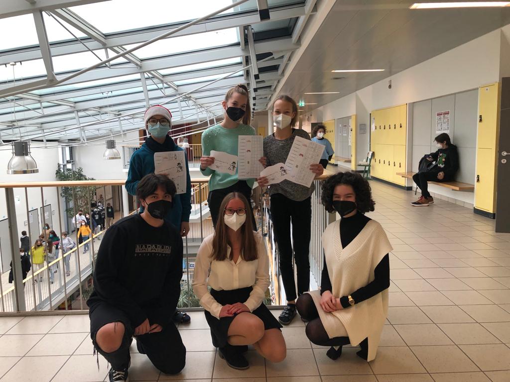 Vom 1. bis zum 23. Dezember wurde jeden Tag eine neue Frage neben den Adventkranz in die Aula gestellt. Für Schüler*Innen zu Hause waren die Fragen auch online sichtbar. Mit einem selbst designten “Pass” von der Schülervertretung kreuzten die Schüler*Innen die verschiedenen Antwortmöglichkeiten an. Am 23.12.2021 gab es die Möglichkeit den Pass in der Wahlurne abzugeben und damit an einem Gewinnspiel teilzunehmen. Durch Zufallsprinzip wurden die drei Gewinner ausgelost und am selben Tag noch verständigt.