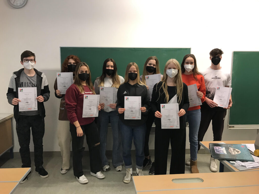 Alle Teilnehmer*innen schafften die Prüfung beim 1. Mal und konnten so ihr Zertifikat entgegennehmen. Bei diesem Foto waren ein paar Schüler*innen im Home Schooling, doch die Anwesenden freuten sich sehr über den 1. Teilbereich von vier.