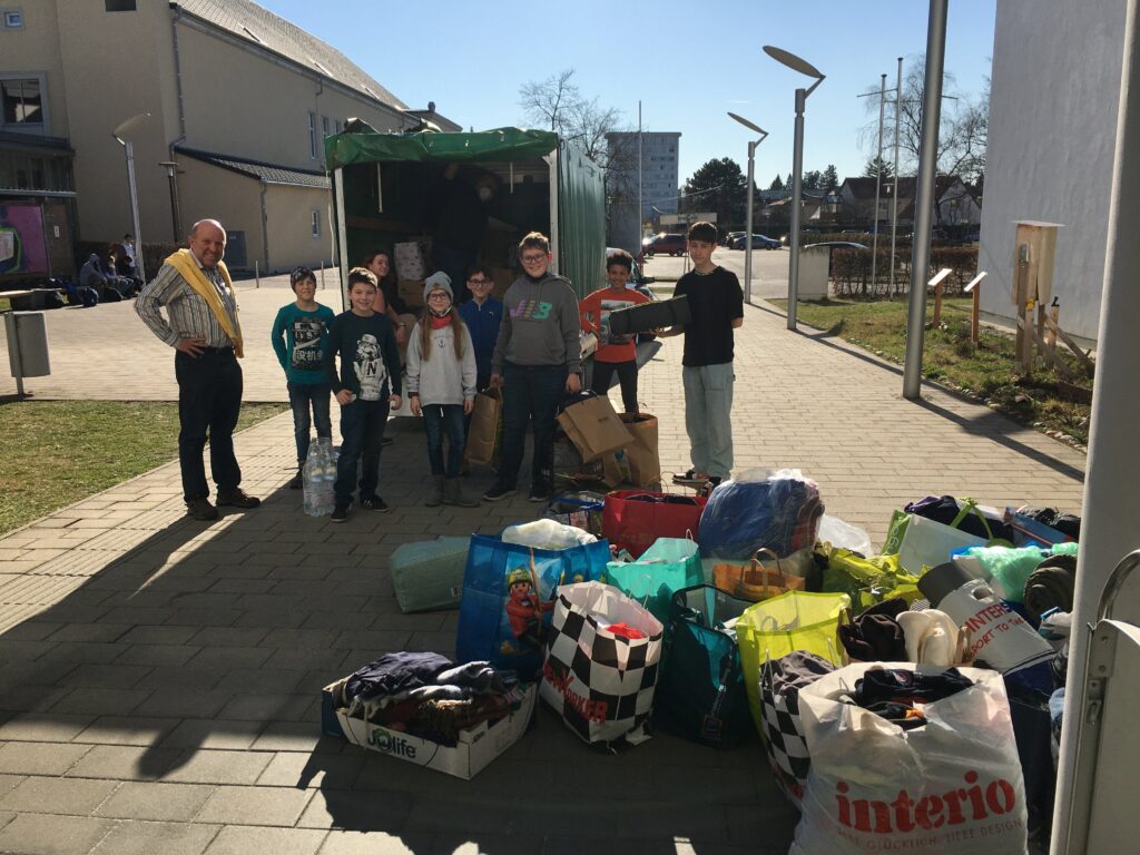 Auf Basis dieser Prämisse schafften Schüler*innen, Lehrer*innen und Eltern im Laufe der letzten beiden Wochen eine überwältigende Flut an Hilfsgütern herbei. Ein grandioses Beispiel für Herzensbildung an unserem Schulstandort, abseits von Schularbeiten und Tests. Im Zuge dieser spontan ins Leben gerufenen Hilfsaktion, als schnelle Reaktion auf den nach wie vor schwelenden Krieg in der Ukraine, langte bis Mittwochnachmittag eine anhängerfüllende Ansammlung an Sachspenden in der Aula ein. Die Kisten und Sackerl schienen überzuquellen, der Platz drohte auszugehen.