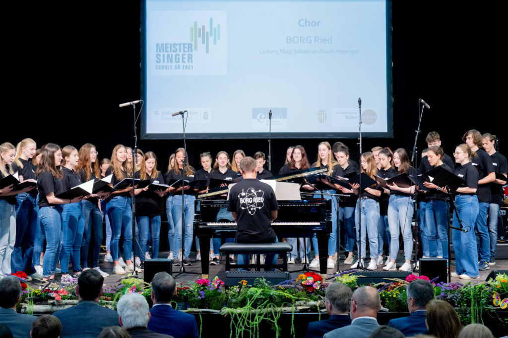 Die Verleihung des Gütesiegels „Oberösterreichische Meistersingerschule“ fand in diesem Jahr im Rahmen der internationalen Musikmesse „Music Austria“ in Ried im Innkreis statt. Landeshauptmann Mag. Thomas Stelzer, der Präsident des oberösterreichischen Chorverbandes, MMag. Harald Wurmsdobler und Bildungsdirektor Dr. Alfred Klampfer würdigten jene oberösterreichischen Schulen, an denen das Chorsingen eine besondere Rolle spielt. Für die Verleihung des Gütesiegels konnten sich Schulen bewerben, an denen hochwertige Chorarbeit stattfindet und somit sängerische, muskalische und soziale Kompetenzen der Schüler*innen stark gefördert werden. Das Gütesiegel wird von einer Fachjury für jeweils ein Jahr vergeben. Dem Schulchor des b[r]g Enns wurde das Gütesiegel bereits zum vierten Mal überreicht.