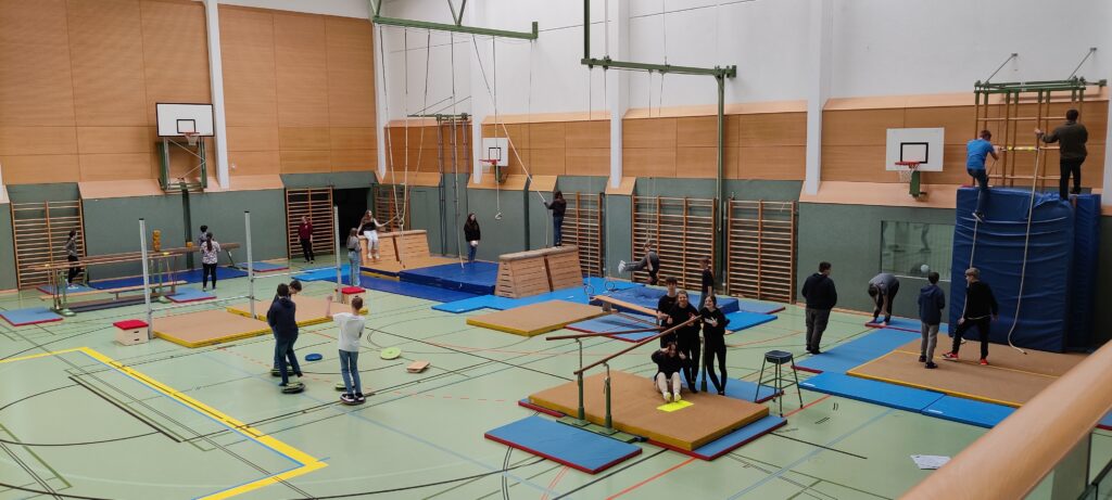Am 27. April feierte die ARGE „Bewegung und Sport OÖ.“ den Tag des Schulsports. Die Sportlehrer*innen wollten in diesem Zusammenhang den Schüler*innen der b[r]g Enns eine zusätzliche Bewegungsmöglichkeit außerhalb der BSP-Stunden anbieten. Dazu wurden Klassen eingeladen, ab der 2. bis. 6. Einheit in die Sporthalle oder auf den Freiplatz zu kommen, um mehr „Bewegung“ in den Schulalltag zu bringen. Die Kolleg*innen verschiedenster Klassen und Unterrichtsgruppen ergriffen die Chance, mehr Bewegung in ihren Unterricht zu bringen und besuchten uns in der Sporthalle. Dort genossen es ihre Schüler*innen, herumzuschwingen, zu klettern, zu balancieren oder auch einfach nur Ball zu spielen.