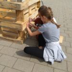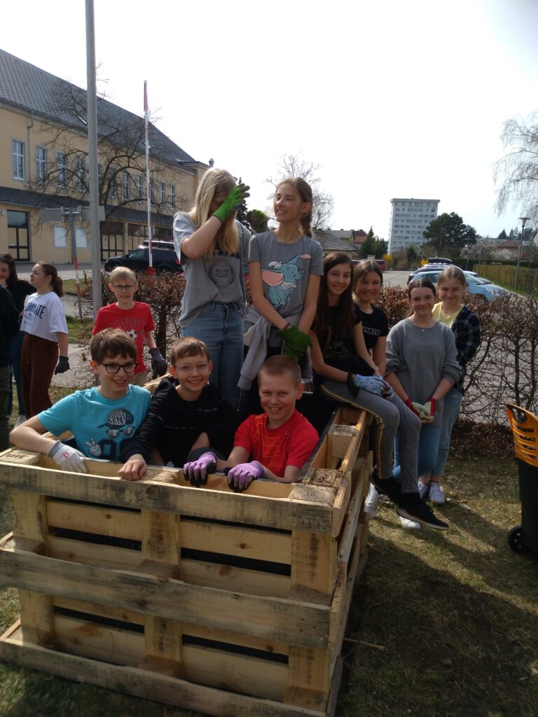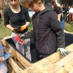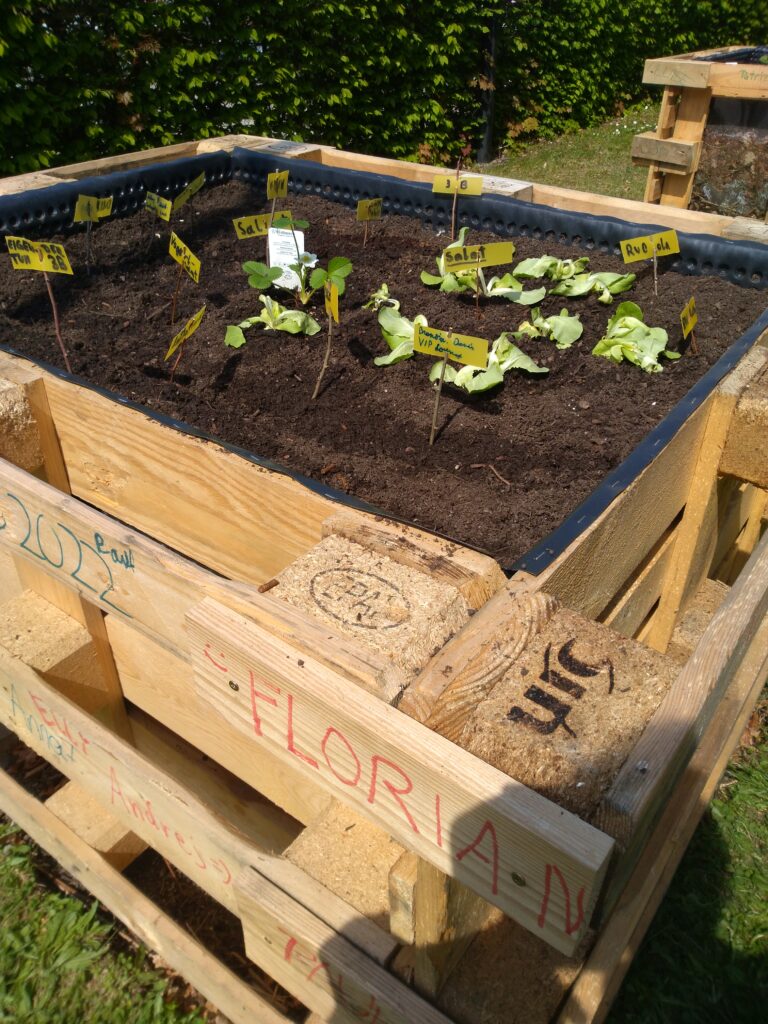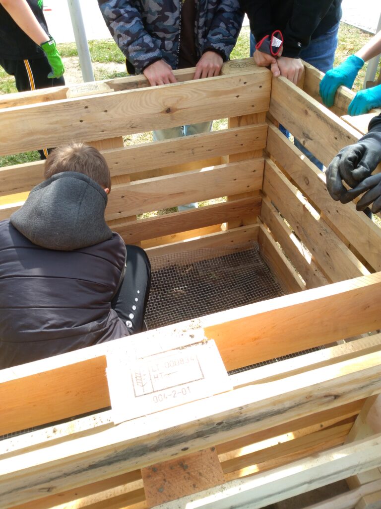 Wie Humus, also wertvoller Boden, wieder aufgebaut werden kann, wurde am Bau von Hochbeeten demonstriert. Mit Hilfe eines Sichtfensters, das an der Seite angebracht wurde, kann auch zukünftig beobachtet werden, was im Hochbeet (also in der Erde) passiert.