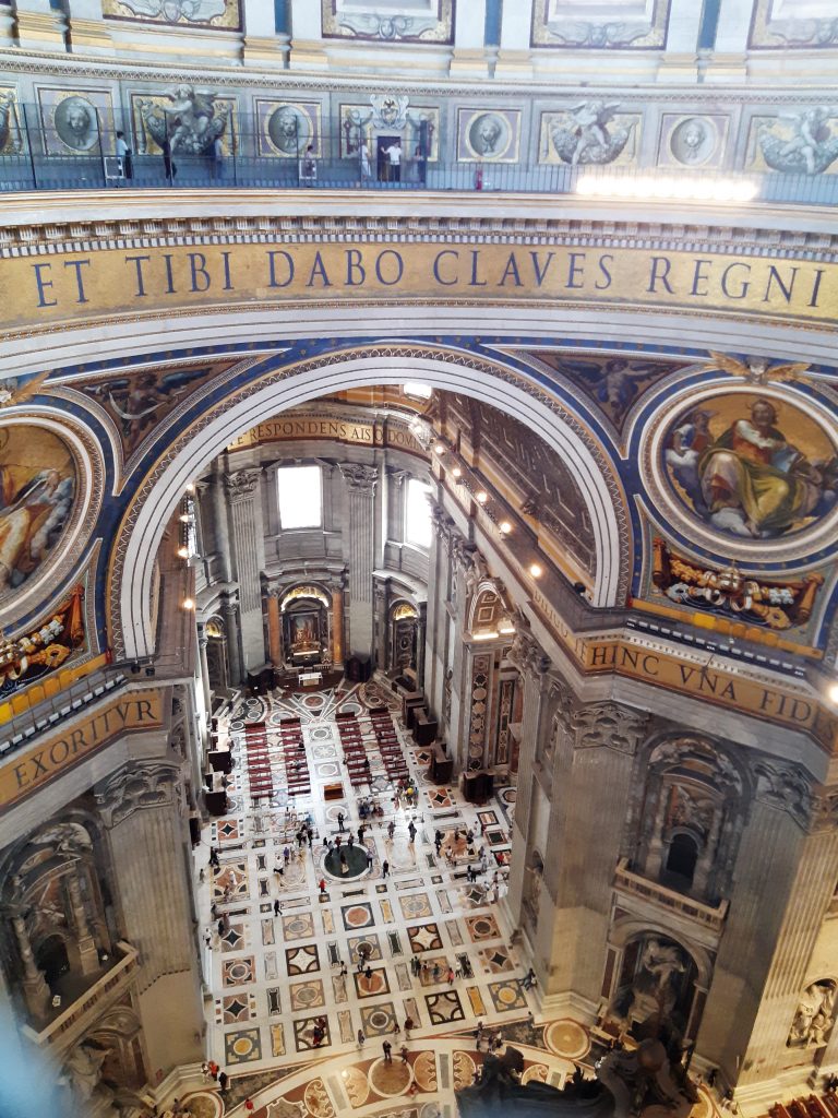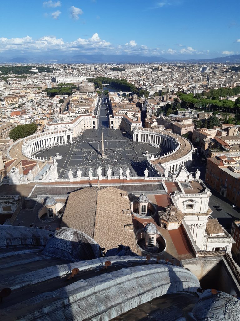 Am Freitag startete unser Tag (ungewollt) sehr früh, da wir die U-Bahn zum Vatikan nehmen mussten, die aber wegen eines Streiks den Tag über nicht mehr fuhr. Dort besuchten wir zuerst die vatikanischen Museen und die Sixtinische Kapelle. Nach der Mittagspause statteten wir dem Petersdom einen Besuch ab, wobei auch einige von uns den anstrengenden Aufstieg zur Kuppel (551 Stufen) bestritten, um dort den wunderbaren Ausblick über Rom zu genießen.