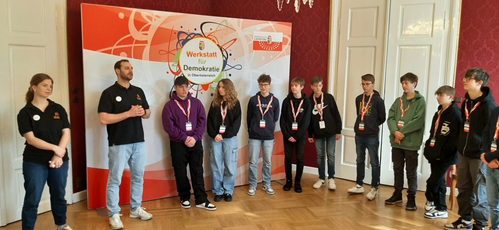 Oberösterreich und die EU, darum ging es bei der Demokratiewerkstatt am Oberösterreichischen Landtag in Linz. Für 5 Tage wurden Schulen aus Oberösterreich eingeladen sich in Workshops mit wichtigen Themen zur EU auseinanderzusetzen. Das b[r]g Enns mit der Klasse 4D war eine der wenigen Schulen, die diese Chance bekamen.