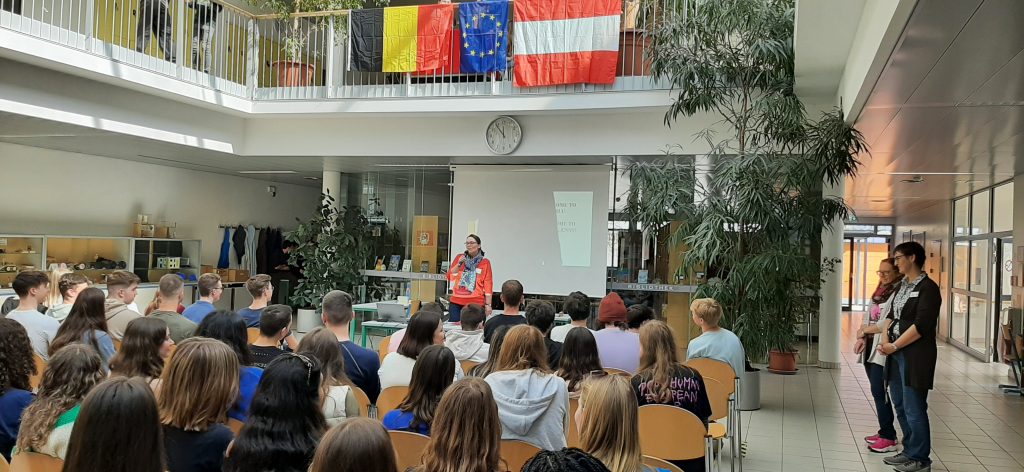 Im Rahmen des ERASMUS+ Programmes bekamen unsere 7. Klassen vom 22. bis 23. März Besuch von 33 belgischen Schüler*innen und 4 Lehrer*innen aus der Schule Sint-Donatus in Merchtem in der Region Flandern.