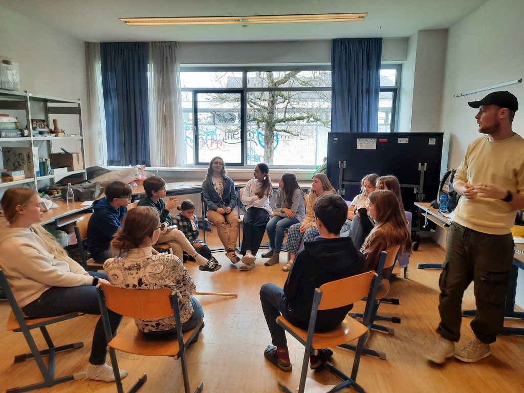 Die Reaktionen waren auf beiden Seiten überaus positiv. „Das war sicherlich einer der besten Gruppen, mit denen ich je gearbeitet habe!“, zeigte sich Michael Foster sowohl von den sprachlichen, als auch von den schauspielerischen Talenten absolut begeistert. Auch das Feedback der Schüler*innen war hervorragend: Wir haben in Kleingruppen kurze Dialoge einstudiert und den anderen vorgeführt. Durch den direkten Kontakt mit Michael hat sich unser Englisch extrem verbessert. Wir würden ein solches Angebot gern wieder nutzen.