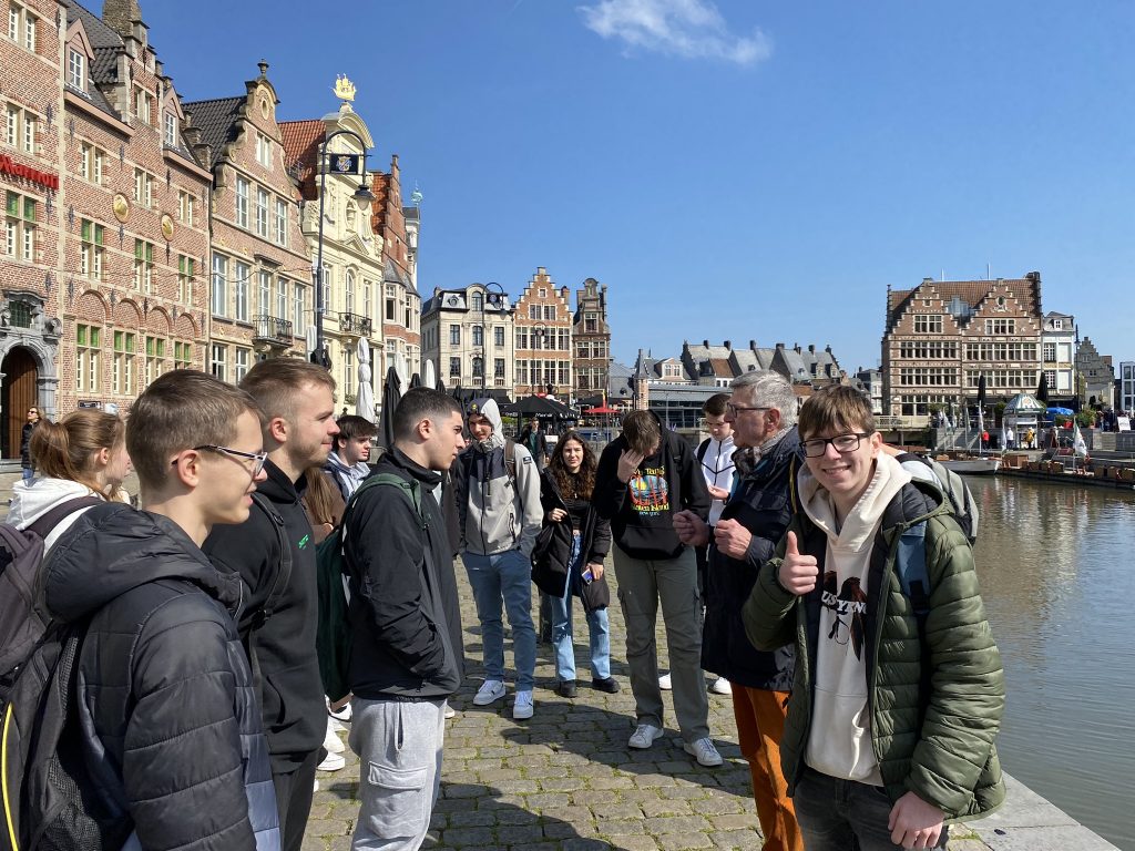 Andere Aktivitäten, wie z.B. das gemeinsame Einkaufen von Zutaten für das gemeinsame Mittagessen auf Flämisch oder gemeinsame sportliche Aktivitäten auf dem Sportplatz in Merchtem sowie ein musikalischer Abschluss mit Karaoke in unserer Partnerschule in Merchtem gaben den Schüler*innen aus Österreich die Möglichkeit, einen Einblick in die sprachliche Vielfalt des Landes und in den Alltag an einer Schule in einem anderen EU-Land zu gewinnen und gemeinsam Spaß zu haben. Außerdem wurde Brüssel von den Schüler*innen gemeinsam mit einem Quiz- Actionbound- erkundet, wobei die Schüler*innen auf spielerische Art und Weise die Hauptstadt Belgiens kennenlernen konnten. Das Vorhaben, eine Führung in einer Chocolaterie zu machen und die berühmte belgische Schokolade zu verkosten, wurde allerdings jäh durch den Streik der Deutschen Bahn zunichte gemacht. Am Mittwochabend, nach dem Ausflug nach Gent und Brügge, wo wir in zwei Führungen die Geschichte dieser wunderbaren Städte kennenlernen durften, wurde bekannt, dass ein Streik der DB für Freitag geplant war und unsere Rückreise mit dem Nachtzug gefährdet war. Infolgedessen gab es Bemühungen von allen Seiten (ÖBB, Lehre*innen, Direktion, Kolleg*innen in Österreich), die Rückreise für die 50 teilnehmenden Schüler*innen dennoch zu ermöglichen. Am Donnerstagvormittag, nachdem die Rückfahrt per Night Jet definitiv abgesagt war, gelang es schlussendlich nach unzähligen Telefonaten, den Rücktransport mit einem Bus zu organisieren, der uns schließlich am Freitag bzw. Samstag gut nach Hause brachte. Auch Schokolade mussten wir noch rasch kaufen, um ihn dann zuhause verkosten zu können. Die unerwartete Wendung der Reise hatte trotz der negativen Seite einen positiven Nebeneffekt- sie hat sowohl uns als Team als auch jede/n einzelnen von uns gefordert und gestärkt und wir haben erfahren dürfen, dass mit gegenseitiger Hilfe und einem gesunden Maß an Flexibilität viel möglich ist.