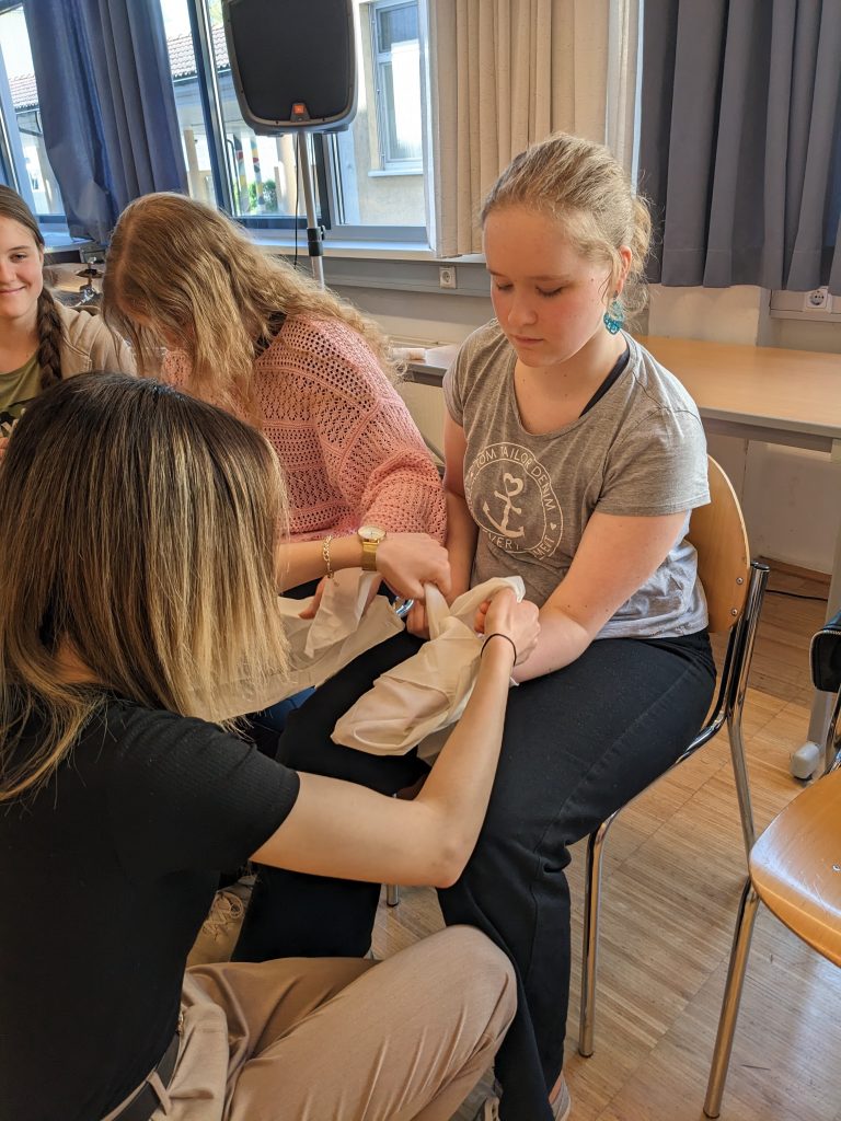 49 Schüler*innen haben am diesjährigen Erste Hilfe Kurs am b[r]g Enns teilgenommen und den beiden Lehrbeauftragten Mag. Vera Bangerl und Mag. Miriam Wintereder bewiesen, dass sie Erste-Hilfe-fit sind. An zwei Samstagen nahmen sich die Schüler*innen Zeit, die wichtigsten Handgriffe und theoretischen Infos zu erlernen und ausgiebig zu üben. Alle Schüler*innen dürfen nun selbstbewusst behaupten, die notwendigen Erste-Hilfe-Maßnahmen bei Blutungen, Unfällen im Straßenverkehr, Schlaganfall, Herzinfarkt, Sonnenstich, epileptischen Anfällen u.Ä. anwenden zu können.