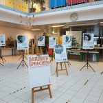 Wanderausstellung über die Erinnerungen von Zeitzeug*innen in der Aula des b[r]g Enns