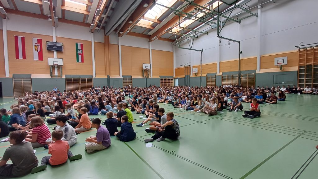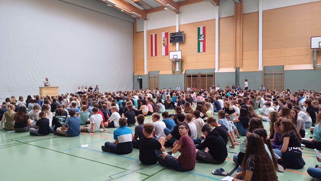 Am Mittwoch, 13.9.2023, versammelten sich alle Schüler*innen im Turnsaal zu einer kurzen Feier am Beginn des neuen Schuljahres.
