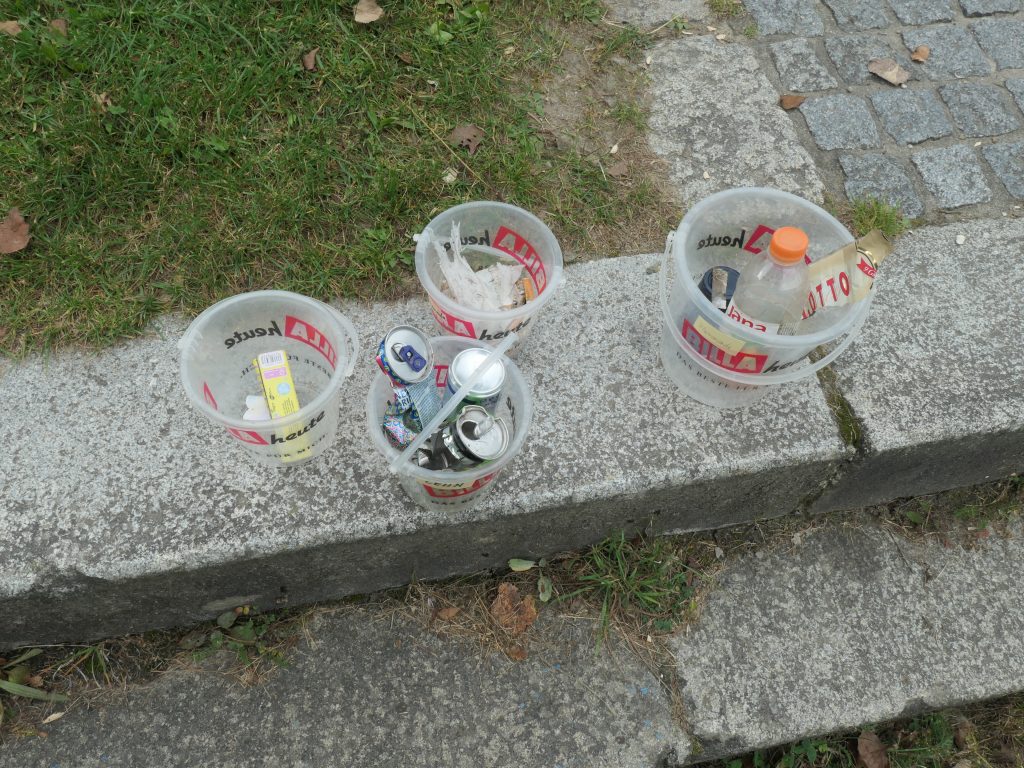 Das Ergebnis zeigte einerseits keine größere Müllbelastung am Ufer und erfreulicherweise keine Funde im Fluss. Dennoch wurden allerlei Arten von Müll am Ufer gefunden – Papier, Plastikteile und Sackerl, Kronkorken, Dosen, eine Bierflasche, etc. und vor allem im Bereich der Bank viele Zigarettenstummel!