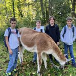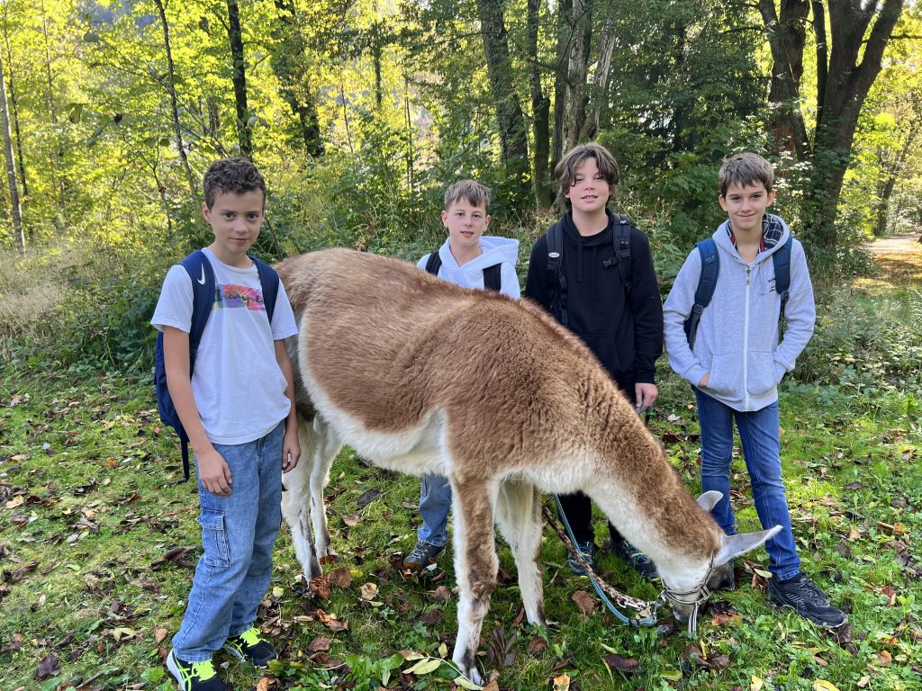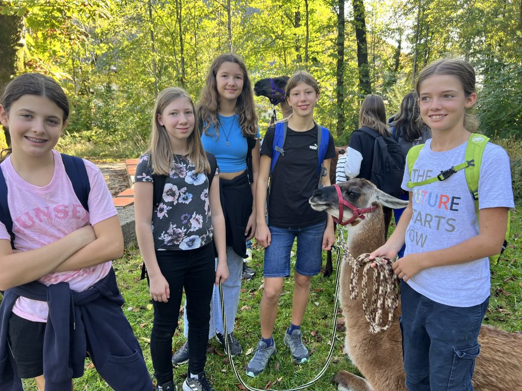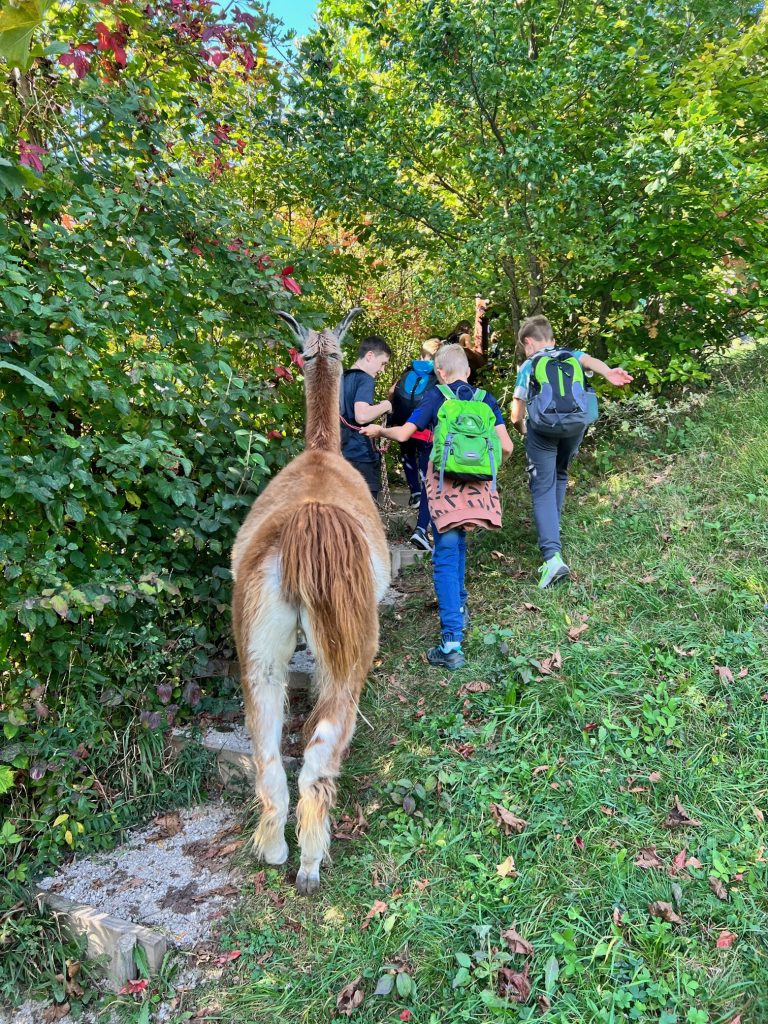 aussuchen. Nachdem sie das alles erklärt hatte, ging die Lamawanderung los. Die ganze Klasse