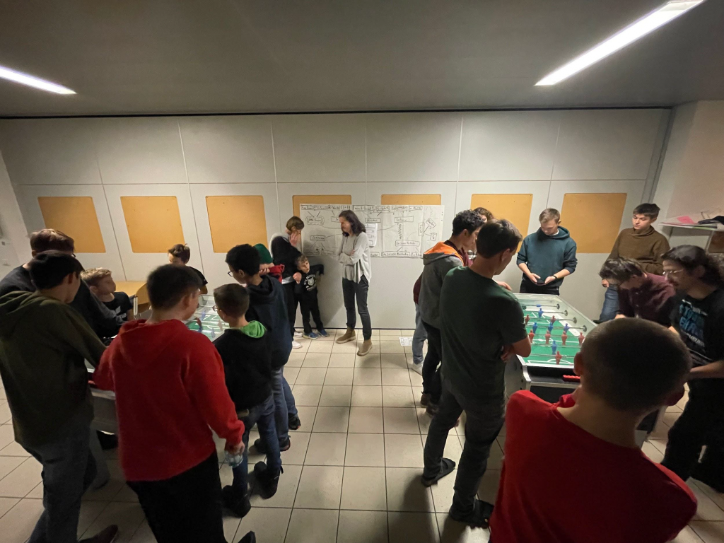 Am 14. Dezember 2023 organisierten wir, die Schüler*innenvertretung des b[r]g Enns, ein Wuzeltischturnier in der Aula des Schulgebäudes. Neben vier Lehrern und dem Direktor nahmen 26 Schüler an dem Turnier teil. Es spielten jeweils zwei Zweierteams gegeneinander, dabei kamen die Gewinner in die nächste Runde und hatten im Finale die Chance, einen 5-Euro-Gutschein für das Schulbuffet zu gewinnen.