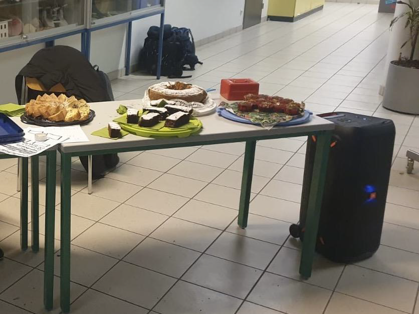 Außerdem wurde ein Kuchenbuffet organisiert, das mit Süßem und Musik für eine ausgelassene Stimmung sorgte. Das Geld, welches beim Verkauf eingenommen wurde, wurde dafür verwendet, Menstruationsartikel für die Damentoiletten zu kaufen.